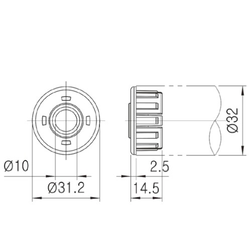 滾筒塞(含軸承),可塞入Φ32滾筒專用管,並與滾筒公母座結合使用。本身已嵌入軸承,可提供較佳滑順度與耐用性。