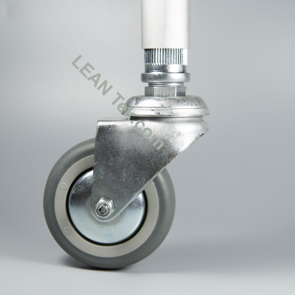 4吋敲入式TPR固定輪 ,用於人員推動台車側使用,助於人員推動順暢。直接以工具敲入管身即可使用,須注意敲入時,輪子方向位置。