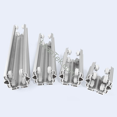 鋁擠管專用導軌(50mm),機構設計精巧,內置8組小導輪,可直接套入鋁擠管,形成局部極高滑順度的滑動機構。
