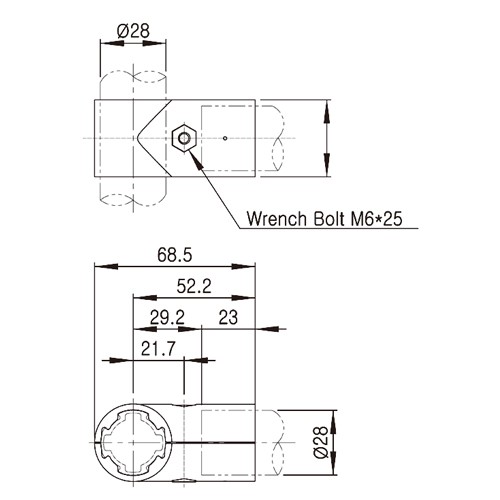 铝挤管系统 - Ø28外包连接件 - 单片